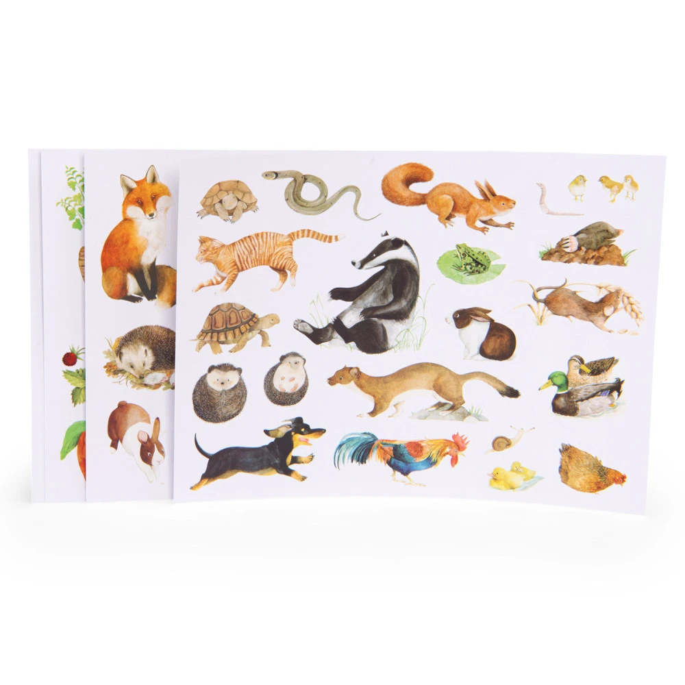 Pochette de 100 stickers nature avec les animaux, les fleurs, les plantes, les fruits et les légumes du jardin