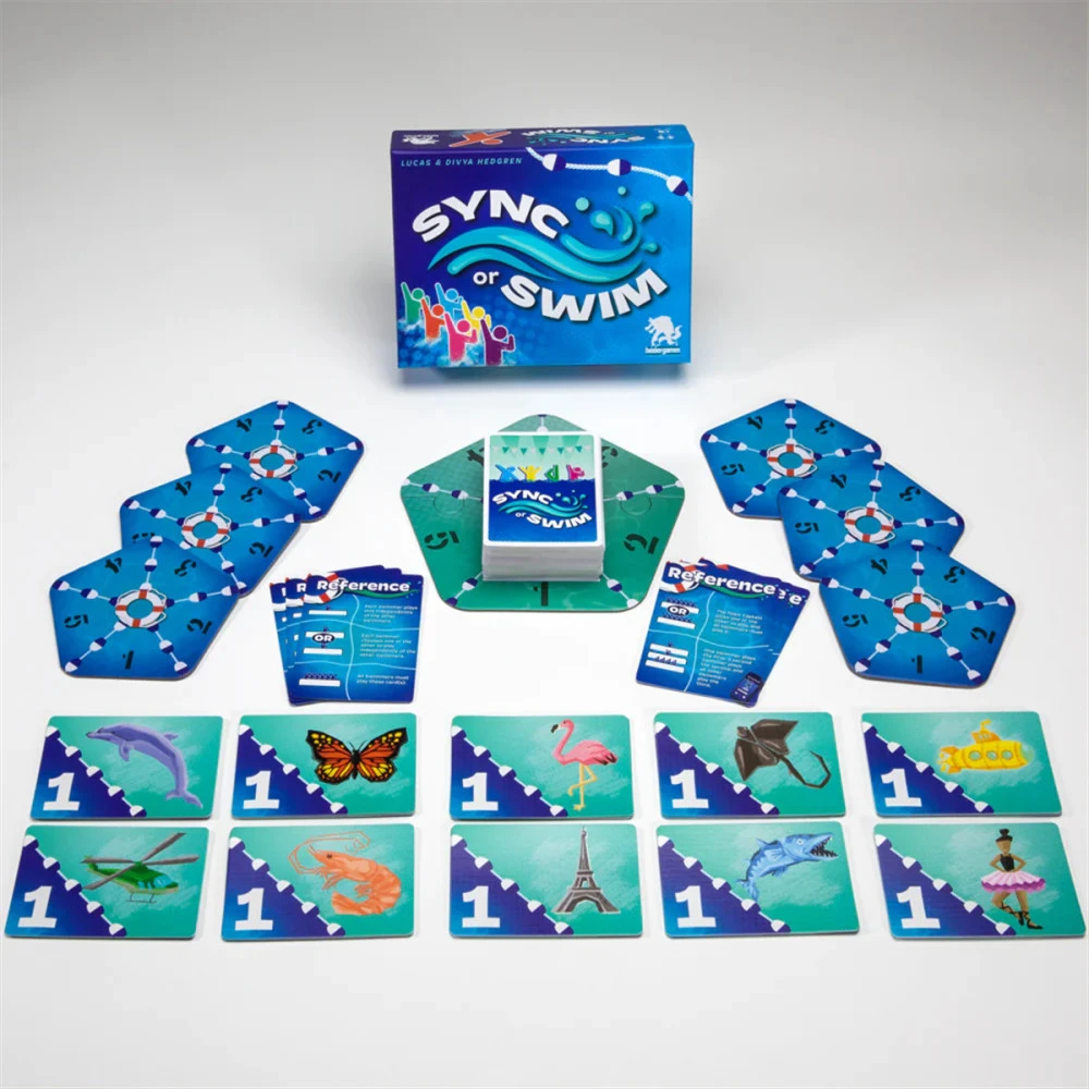 « Sync or swim » est un jeu coopératif de natation synchronisée stratégique, amusant et plein de rebondissements qui se joue de 3 à 6 joueurs.