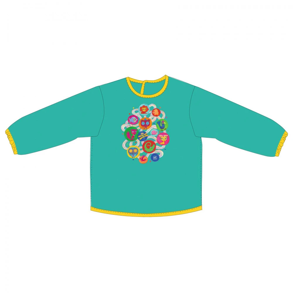 Parfait pour protéger les vêtements des jeunes artistes quand ils dessinent, peignent, collent et créent, tablier Muriel de djeco qui se ferme facilement grâce à 3 velcros.