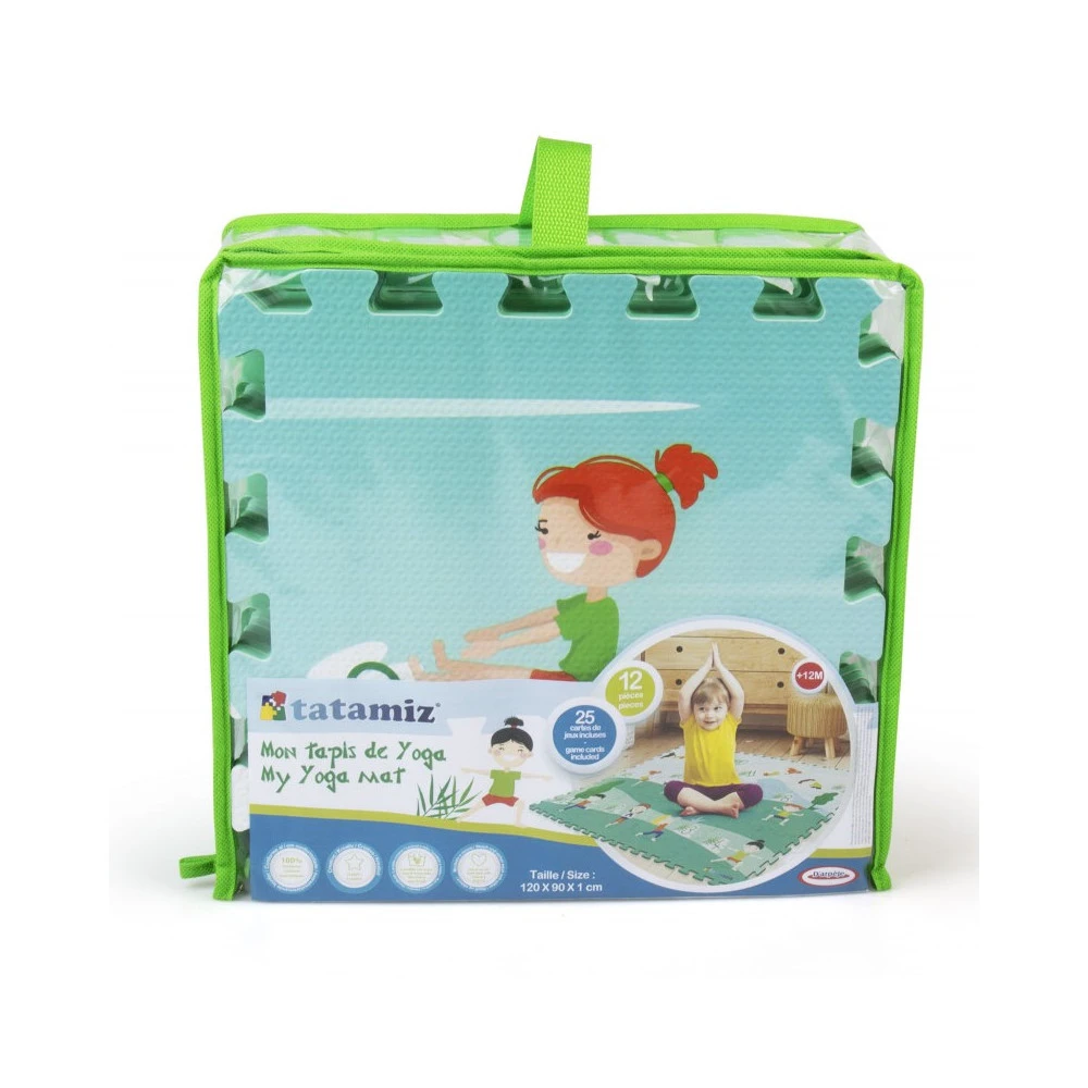 Tapis de yoga en mousse avec 25 cartes de jeux pour reproduire les positions illustrées