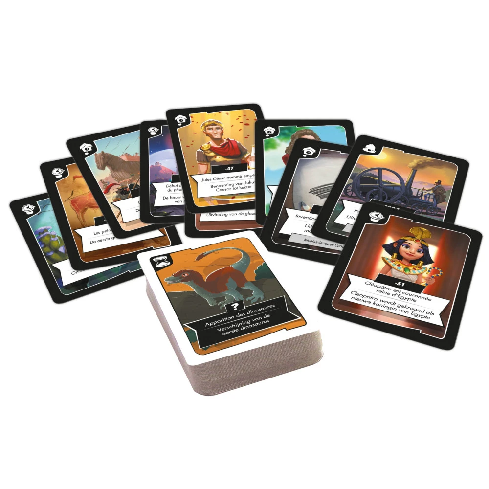 Timeline Twist est un jeu de coopération où ensemble, vous allez devoir tenter de replacer vos 35 cartes dans l’ordre chronologique.