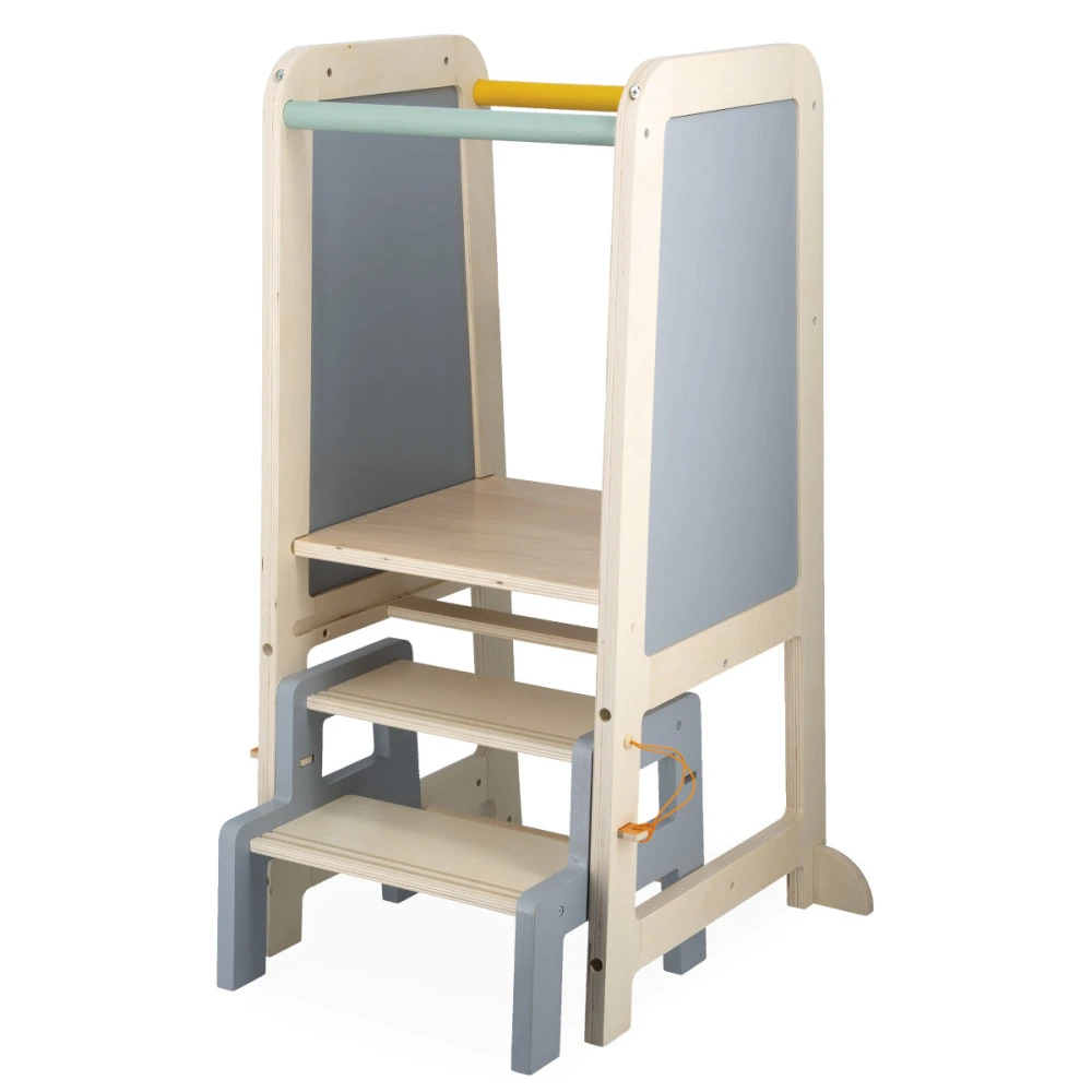 La tour est réglable en hauteur (32,5 et 40,5 cm) et grandit ainsi avec votre enfant.