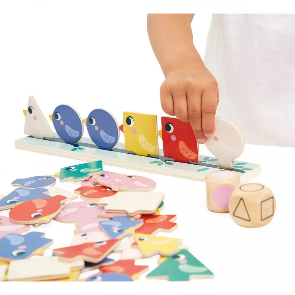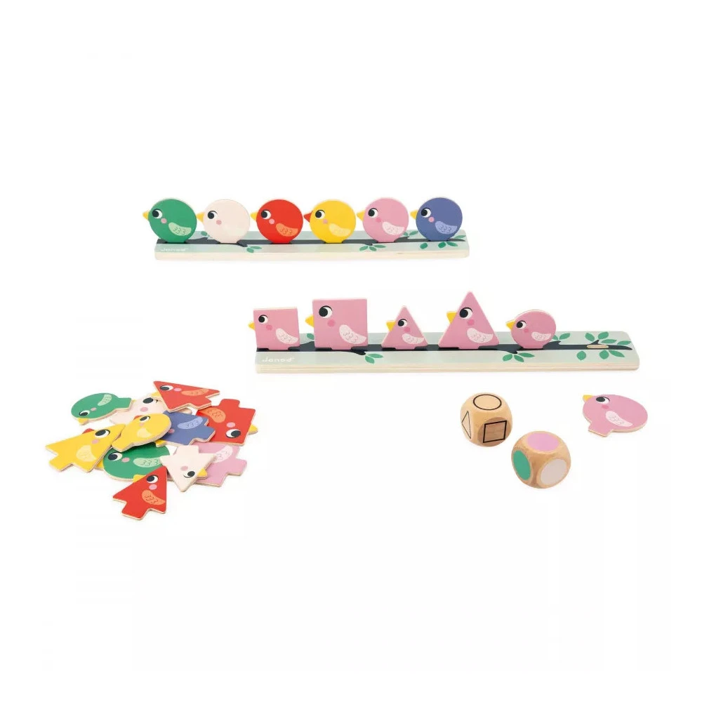 Les dés donneront les indications aux enfants pour poser les bons oiseaux sur les branches.
